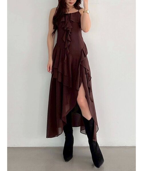 動きのあるアシンメトリーのヘムが華やかなでトレンドの分量感たっぷりなキャミワンピース。 シフォン素材で仕立てました。 ウエストは程よくぴたっとしたラインでスタイルアップさせ、腰回りはフリルで体形カバーできます。 ふんだんに用尺を使用した裾のアシンメトリーで付いたフリルの動きが高見えし、1枚で目を引くデザインになっています。 アシンメトリーなヘムがスリット見えし、脚を綺麗に見せてくれます。 ▼スタイリング 1枚で着て、ガーターシアーシャツを羽織ってトレンドライクなスタイリングがおすすめ。 レイヤードスタイリングで、デニムやなどのパンツを合わせても◎ ※着用画像は全てサンプルです。 ~~ZOZOTOWNでお買い物を楽しむ便利機能~~ ♡商品のお気に入り登録 完売カラーの再入荷時、ラスト1点の時、セール開始時に通知でお知らせします。 予約アイテムが入荷して通常販売になった時もお知らせしてくれます! ♡ブランドのお気に入り登録 新商品や再入荷、セールやクーポン情報など、 ブランドのお得な情報をいち早く受け取ることができます! ~~~~~~~~~~~~~~~~~~~~~~~