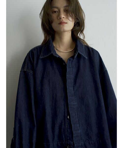 ビッグシルエットなデニムシャツは大胆なシルエットがかわいい1着■デザイン たっぷりとしたボリュームを演出するために、ウエスト部分の切り替えはカーブのパターンを採用し、立体的なシルエットに。スリーブはたっぷりと太めのデザインでルーズな印象に。フロントは比翼デザインでカジュアルなアイテムでもきれいめに見える仕立てでギャップがあるのもポイント。■生地感 国内のコットン100%のデニム生地を使用しています。程よくハリコシもあり、シルエットがきれいに見える素材感。柔らかく仕上げているので着心地も抜群です。■サイズ感 オーバーサイジングでももが隠れぐらいの着丈の設定に。とにかくビッグシルエットなのですっぽりと体を包みこんでくれるサイジング。首元はボタンを開けたり袖をまくって少し肌を見せることでオーバーサイジングとのギャップが可愛く着ていただけます。■スタイリング セットアップ企画のルーズデニムとのスタイリングがオススメ。デニムコーデで、シャツスタイルなのでラフに見えがちですがインディゴカラーと立体的なシルエットで大人な印象で着ていただけます。・・・・・・・・・・・・・・・・・・・・・・透け感:なし裏地:なし伸縮性:なし光沢感:なし生地の厚さ:普通・・・・・・・・・・・・・・・・・・・・・・※商品画像はサンプルのため、色味やサイズ、素材の混率等の仕様に変更がある場合がございます。予めご了承ください。※生地寄り画像を正規の商品の色味に近づけております。■商品のお気に入り登録再入荷通知やラスト1点、お得なプライスダウンの情報も受け取ることができます。ぜひご登録ください◎