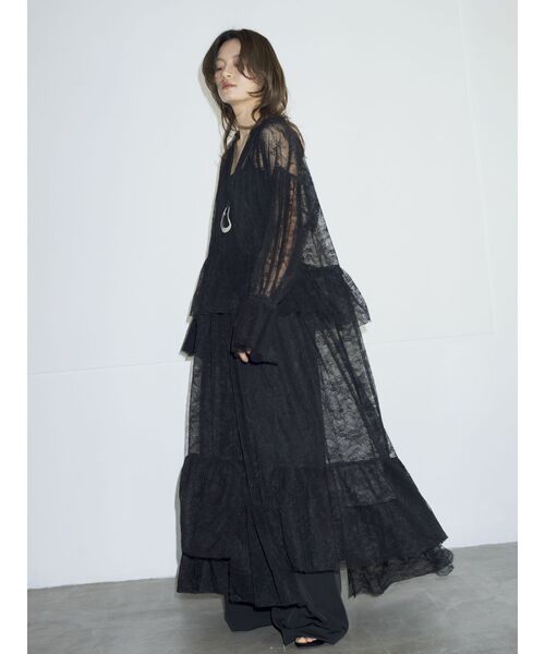繊細なレース素材をふんだんに使用したマキシワンピース ■デザイン 首元はざっくりと深めに開け、鎖骨が見えるきれいなラインに。 スカートはアシメデザインでたっぷりとしたボリュームデザインで動きのあるデザインに。 インナーにはペチワンピースを付属しているのでワンピースとして1枚でもスタイリングが完成します。 ■生地感 ナイロン混素材の繊細なレース生地を使用。 透け感があり軽やかな印象。 ペチワンピースは取り外し可能です。 ■サイズ感 たっぷりとしたシルエットでボリュームのある設定に。 マキシ丈でやや長めの設定。 ずるっと長めに着ていただくのがオススメです。 ■スタイリング 甘めなレースワンピースには辛口なレザージャケットとの合わせがオススメ。 ジャケットはチュールコンビなので、素材を中和するようなレイヤードでおしゃれ見えするスタイリング。 足元はロングブーツでトレンドも取り入れるのがマッチします。 ・・・・・・・・・・・・・・・・・・・・・・ 透け感:あり 裏地:なし 伸縮性:なし 光沢感:なし 生地の厚さ:普通 ・・・・・・・・・・・・・・・・・・・・・・ ※商品画像はサンプルのため、色味やサイズ、素材の混率等の仕様に 変更がある場合がございます。予めご了承ください。 ※生地寄り画像を正規の商品の色味に近づけております。 ■商品のお気に入り登録 再入荷通知やラスト1点、お得なプライスダウンの情報も受け取ることができます。 ぜひご登録ください◎