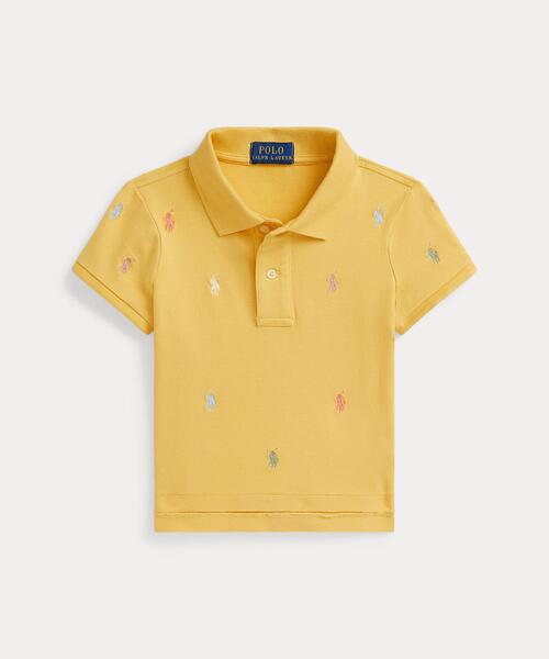 風通しのよいストレッチコットン メッシュを使用したポロシャツ。ボックス型シルエットと、全体にあしらったシグネチャーのポニーのモチーフで遊び心のあるひねりをプラス。・Ralph Laurenのコットン製品を選ぶことで、環境の保護と修復に努めながら、コットン業界が今後も成長を続けられるように支援するBetter Cotton™ミッションへのRalph Laurenの取り組みをサポートすることになります。・本商品は物質収支方式に則って材料を調達しているため、全ての製品にBetter Cotton™が含まれない可能性があります。物質収支方式について詳しくは、bettercotton.org/massbalanceをご覧ください。・ボックス型シルエット。・全体にシグネチャーのポニー刺繍。・リブのポロカラー / 2つボタンの前立て / 半袖、リブアームバンド。・テニステール。※商品の色味は、光のあたり具合など諸条件により色感が多少異なって見える場合がございますので予めご了承下さい。※柄の配置は、商品によって異なる場合がございます。※サイズにより、ボタンの数・有無が異なる場合がございます。Toddler(Age 2-7 / 90-130cm)