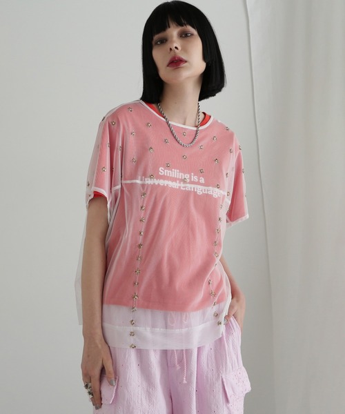 キラキラ光るビーズや刺繍が華やかさをプラスしてくれるチュールシアーブラウス ・透け感のあるチュール素材 ・レイヤードしやすいTシャツ型ブラウス ・ブラックとホワイトの2色展開 【商品特性】 生地の厚さ:薄手 透け感:あり 伸縮性:あり 光沢感:なし 着用シルエット:レギュラー インナー着用:必要 【スタッフレビュー】 プリントトップスやロゴT等、ノースリーブアイテムとレイヤードして使えるシアーなチュール素材のTシャツ型ブラウス。 キラキラと光るビーズやスパンコールの刺繍が華やかな印象に。 単調になりがちな初夏のコーデに一枚プラスするだけでコーディネートのポイントになります。 【お気に入り登録】 ♡商品のお気に入り登録♡ 再入荷・残り1点・セールの通知を受け取ることができます。 ♡ブランドのお気に入り登録♡ 新商品・再入荷/・ショップおすすめトピックスなど、ブランドの情報を受け取ることができます。 【取扱注意事項】 モデルの着用画像の場合、光の当たり具合により、実際の色味と異なって見えることがございます。 色味は、商品生地の画像をご参照ください。 蛍光増白剤が入っていない洗剤を使用して下さい。 単独洗いをして下さい。 もみ洗いは、避けて下さい。 濡れたままの放置や、長時間の浸漬はしないで下さい。 引っかけに、ご注意下さい。