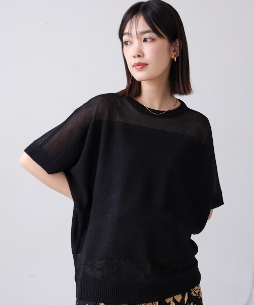 ■POINT シアー感が大人のこなれを演出するサマーニットが登場。シルエットはシンプルにどんな体型の人にも合うサイジング、肩回りや裾に透け感を持たせることでスッキリと細見えが叶います。ボディー部分は透けすぎないようにシアーを重ねたような網目にしており、こまやかなデザインでシンプルなのに他と違った印象に。 ■FABRIC サマーニットの涼し気な素材感で表面感はありながら内側は肌当たりがとても柔らかく風通しも良い。シワにもなりにくく、ご自宅でのお手入れが可能 ………………… 透け感:あり 裏地:なし ………………… ★商品のお気に入り登録 登録すると、完売しても再入荷時に通知を受け取ることができます。 ほかにもお得な特典があるかもしれません♪ ★ブランドのお気に入り登録 新商品や再入荷などの情報を受け取ることができますので、是非ご登録ください♪