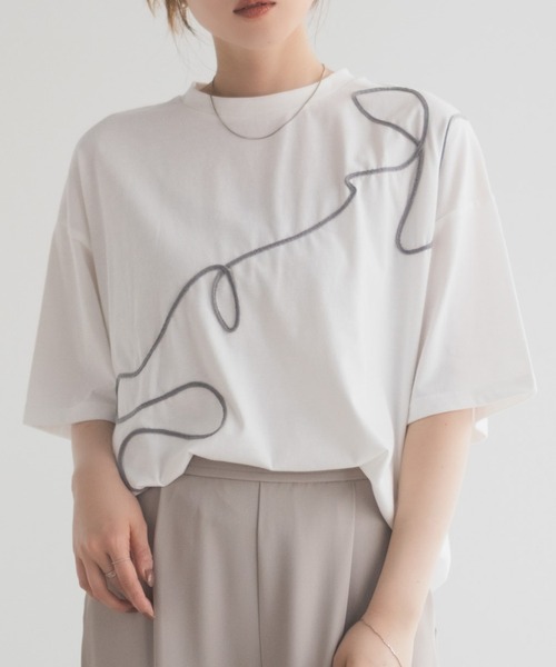 トレンドのコード刺繍を使用したデザインTシャツ。カラーは、オフホワイト・チャコールグレー・ベージュの3色展開です。■デザインオーバーサイズのTシャツに、配色テープのコード刺繍がオシャレな一枚。コーディネートに取り入れやすい配色もポイント。■ポイントほどよい厚みの天竺で、肌触りも良く、夏にサラッと着られます。■コーディネートデニムやコットンライクチノのワイドパンツコーデがおすすめです。**********************透け感:ホワイトのみあり裏地:なし伸縮性:なし光沢感:なし生地の厚さ:普通**********************モデル身長:160cm着用サイズ:M■品番P42-12503 [02222005366]-INFORMATION-◆商品のお気に入り登録をおすすめします。♡をクリック!完売カラーの再入荷や、ラスト1点の通知、セールの際の通知を受ける事ができます。◆ブランドのお気に入り登録もおすすめ!新商品や売り切れ商品の再入荷など、いち早くブランドのお得な情報を受け取ることができます!是非ご登録ください♪※掲載画像の商品の色味は、サンプル撮影であることや屋外や屋内の光の照射や角度により実物と色味が異なる場合がございます。 また表示のサイズ感と実物は若干異なる場合もございますので、予めご了承ください。※他のキャンペーンにより、期間中に価格が変動する場合があります。※ご注文いただいた予約商品のお届け時期の確認は、注文履歴ページより行えます。※他のキャンペーンにより、期間中に価格が変動する場合があります。※セールは予告なく終了させていただく場合もあります。