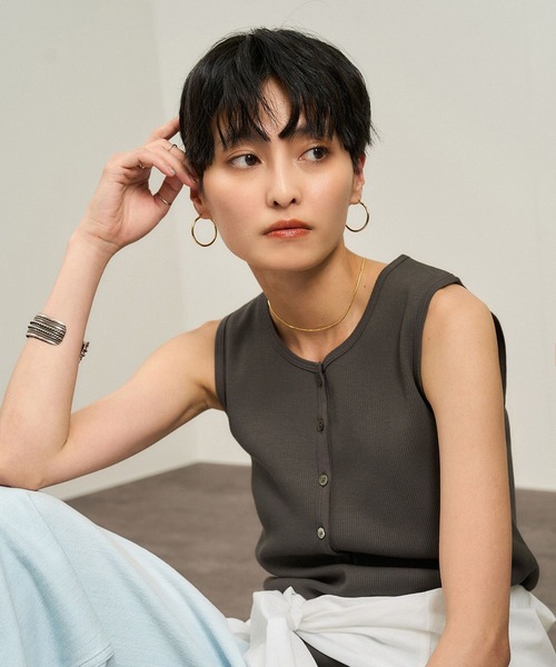 UVケア&洗濯耐久で毎日快適。上品さも叶える、大人のためのノースリーブT■デザイン / シルエット夏の定番にぴったりな、上品な抜け感を演出するリブヘンリーネックノースリーブプルオーバー。顔まわりをすっきり見せるヘルシーなネックラインは、ボタンの開け閉めでアレンジ自在。程よく体のラインをカバーする厚みのリブ素材で、インナー見えせず1枚で着映える大人トップスです。繊細なパイピングや、ステッチが見えにくい裾の仕様など、細部までこだわったクリーンなデザイン。■素材UVケア・洗濯耐久性に優れた「PrimaVeil(プリマヴェール)」シリーズのリブ素材を使用。オーガニックコットン100%で、和歌山の老舗メーカー《紀南莫大小(メリヤス)》製のサステナブルな高品質ニットです。目の詰まった編み地で、透け感が出にくく安心して着用可能。さらりとした肌触りと優れた伸縮性で、快適な着心地が続きます。カラーは、清潔感のあるオフホワイト、柔らかなチャコール、シックなブラックの3色展開。■コーディネート1枚で着映えするノースリーブトップスは、春夏の着回しアイテムとして大活躍。キャミワンピースやサロペットのインナーとしてレイヤードすれば、抜け感のある旬スタイルに。Iラインスカートやスラックスを合わせたミニマルな大人コーデや、ワイドパンツ・ギャザースカートなどのボリュームボトムとも好相性。マニッシュなパンツでキレよく、ツヤ感のあるスカートでフェミニンに、と幅広い着こなしを楽しめます。ジャケットやシャツのインナーにも使えるため、オフィスカジュアルから休日スタイルまでシーンレスに活躍します。■プリマベールシリーズ一覧・商品番号:SHE35200 商品名:プリマベールファームリーリブワンピース・商品番号:SHM35200 商品名:プリマベールファームリーリブハーフスリーブTシャツ・商品番号:SHF35200 商品名:プリマベールファームリーリブタンクトップ・商品番号:SHM35230 商品名:プリマベールショルダータックノースリーブプルオーバー・商品番号:SHM35240 商品名:プリマベールリラックスドルマンスリーブプルオーバー・商品番号:SHM25140 商品名:【WEB限定】プリマベールリブヘンリーネックTシャツ・商品番号:SHF25140 商品名:【WEB限定】プリマベールリブヘンリーネックノースリーブプルオーバー■モデル身長:165cm 着用サイズ:Fーーーーーーーーーー裏地:なし光沢感:なし透け感:ホワイトややありポケット:なし伸縮性:あり生地の厚さ:やや薄手ーーーーーーーーーー