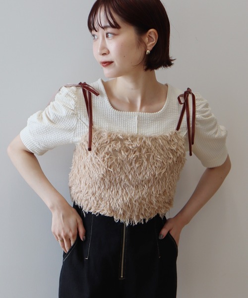 オンライン限定アイテム◎\お気に入り登録者数7,000人超え/大人気アイテムが新色を追加して登場!毛足の長いフェザーのふわふわ感がキュートなビスチェ。ベロアリボンで仕立てたショルダーストラップがフェミニンなアクセントになっています。バックゴム仕様でタイト過ぎないのも魅力のポイント。短丈のコンパクトシルエットで辛めのジャケットからフェミニンなアイテムまで幅広く合わせやすく、アクセサリー感覚でレイヤードスタイルが楽しめます。透け感[なし]生地の厚さ[普通]光沢感[なし]伸縮性[なし]裏地[あり]ポケット[なし]#ガーリー#フェミニン#ショート丈#ビスチェ#フェザー#ベロア素材※モデル着用画像は光の当たり具合で色味が違って見える場合がございます。商品の色味は物撮りの画像をご参照ください。● earth music&ecology ●(アースミュージック&エコロジー)「いいことある服。」たかが服。されど服。波風の多い日々のなかでもほほえんで前を向くあなたを、つつんで一緒に歩きたい。 いいことあるかも。そんな期待までまとえる服をあなたに。earth music&ecologyは、毎日を頑張る女性たちをちょっと前向きにするブランドです。 ▼ 商品のお気に入り登録がおすすめです ▼商品ページ内の「♡」ハートマークをクリック。完売時の再入荷や、最後の1点の通知、コーディネート画像がアップされたとき、お得なお値下げの際の通知を受ける事ができます。【お知らせ】ページでも通知が確認できます。