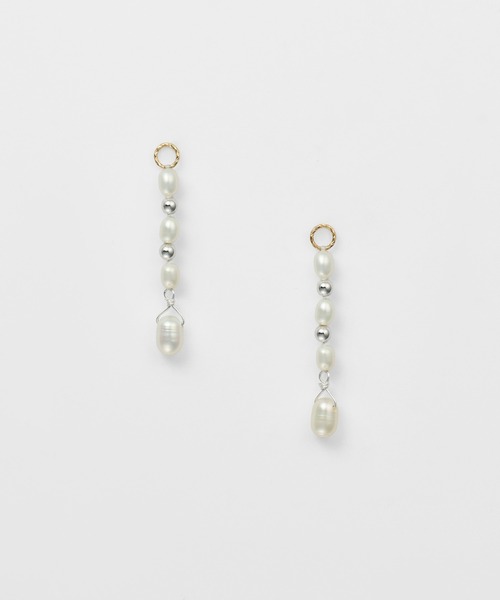 パールとシルバーが織りなす、リズム感のあるピアスチャーム。 パールとシルバーのボールパーツが交互に連なるデザインは、動きのあるシルエットと上品な輝きが魅力。 揺れるたびにパールがさりげなく光を反射し、耳元にやわらかなアクセントを添えてくれます。 大人のカジュアルスタイルにも取り入れやすく、シンプルなピアスにプラスするだけで、洗練された印象に。 気分やシーンに合わせてアレンジを楽しめる、万能なチャームです。 ※天然石を使用している為、一点ずつカットや色、風合いが微妙に異なり、多少のキズや内包物が見られる場合がございますが商品の特徴となっております。予めご了承くださいませ。