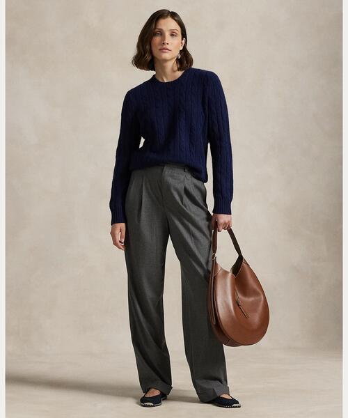 ハイライズのウエストにワイドレッグのシルエットを組み合わせ、テーラード仕立てのドレープでデザインしたストレッチウール フランネル パンツ。プレス仕上げのクリースラインと折り返しの裾でルックを完成。・ハイライズ / ワイドレッグのシルエット / くるぶし下丈。・ベルトループ / かぎホック留めのジップフライ。・サイドシームポケット / 背面にボタン付き箱ポケット2つ。・フロントウエストにナイフプリーツ / 両脚の前後にクリースライン / 背面にダーツ / 折り返しの裾。・モデル身長178cm、着用サイズ4。※商品の色味は、光のあたり具合など諸条件により色感が多少異なって見える場合がございますので予めご了承下さい。ポロ ラルフ ローレン
