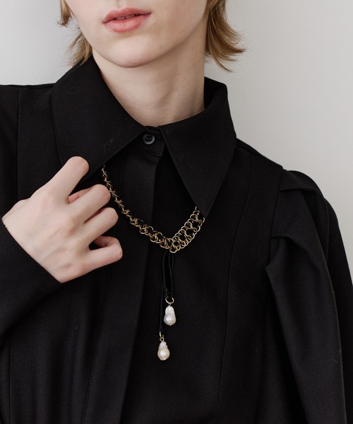 異なるチェーンの組み合わせと、ベロアリボンを通した ヴィンテージライクなデザインのネックレス。 ●design 華奢なループのなかにベロアリボンを通して ゴールド×ブラックのコントラストが目を惹くアクセサリー。 異なるチェーンを組み合わせているので アシンメトリーのような見え方もポイント。 ベロアの先端には雫型の淡水パールを施して 歩くたび揺れる可愛らしい印象に。 ●fabric 淡水パールとは他種のパールと比べて形や大きさも幅広く、 ファッションシーンにおすすめなトレンドのパールです。 汗や水にも強く、耐久性に優れており長く着用していただけます。 二つとない自然に形成されたパールで、カジュアルスタイルとの相性も◎ ●style スタイリングに取り入れるだけで存在感のあるネックレス。 シンプルなTシャツやニットと合わせて ヴィンテージライクなスタイルをお楽しみいただけます。 ●wearing scene 記念日,結婚式,二次会,披露宴,お呼ばれ,成人式,同窓会,女子会,2次会,謝恩会,パーティー,デート,演奏会,発表会,入学式,卒業式,司会,ドライブ,フェス,イベント ●color アザー ●size FREE サイズ補足 モチーフリボン: (長)10cm (短)7cm ▫アクセサリーBOX付き ※淡水パールは天然の素材を使用している為自然なキズやへこみ、くぼみが生じております。 不良ではございませんのでご了承下さい。 ■商品のお気に入り登録 再入荷の通知や、ラスト1点の通知、セールの通知がいち早く届きます! ■ブランドのお気に入り登録 新商品や再入荷など、いち早くブランドのお得情報が届きます!