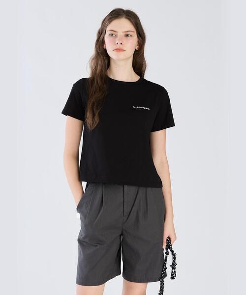 フロントに小さなロゴをあしらったミニマルなTシャツ。綿100%の柔らかな生地が快適な着心地を実現。コンパクトなシルエットで、一枚でもレイヤードにも活躍する一着です。実寸情報38(M)肩幅:37cm/バスト:92cm/袖丈:18cm/身丈:51cm40(L)肩幅:38cm/バスト:96cm/袖丈:18.5cm/身丈:52.5cmモデル身長/173cm、着用サイズ/38