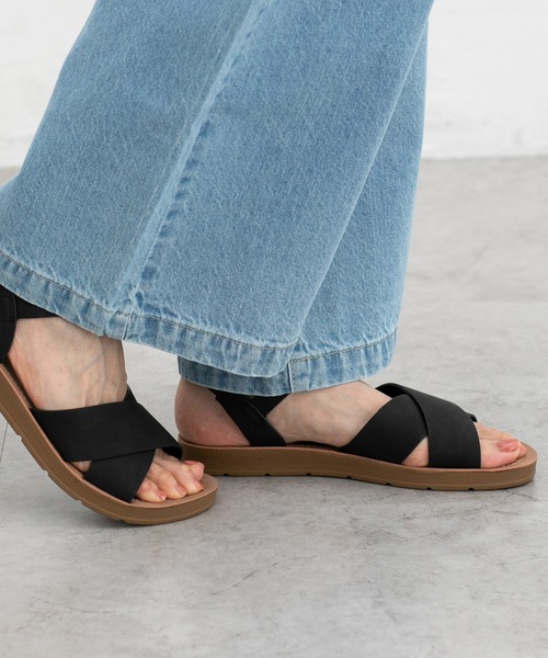デイリーにもリゾートにも 【デザイン】 クロスベルトが抜け感のある、ラフな夏スタイルにぴったりのデザイン。 【素材・機能】 足首のストラップはゴム入りで片手でスポっと履きやすい◎ しっかり曲がるフラットな屈曲ソールと軽量仕様で歩きやすさも抜群。 【スタイル】 普段使いからリゾートまで幅広く大活躍。 ※お客様の声を活かして、サイズを改善しました。 ※湿度・摩擦により多少色落ちする可能性があります。 品番:235-134-9229