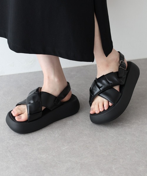 【2025SS】 ころんとした見た目がキュートな厚底サンダル ◦POINT ふわふわのプラットフォームで履き心地が良く、厚底でスタイルアップできる一足! くしゅっとした柔らかい合皮のクロスベルトが、甲をしっかり押さえてくれて安定感のある履き心地も魅力です。 程よい厚みのソールは見た目以上に軽量で足が疲れにくく履きやすいのが嬉しいポイント! ボリュームソールなので、ヒールが苦手な方にもおすすめ。 夏のコーディネートに程よいボリューム感をプラスしてくれる厚底クロスベルトサンダルです。 ◦STYLING そのまま履くのはもちろん、白ソックスで合わせてもこなれ感のあるスタイリングに◎ 足元にボリュームを持たせたデザインなのでシンプルなアイテムと合わせても コーデのバランスも取りやすく、厚底なのでスタイルアップ効果まで期待できます。 ◦DETAIL クロスベルト ストラップ付き 3つ穴で調整可能 厚底 クッション性有り ◦FABRIC フェイクレザー [ 商品のお気に入り登録 ] 完売カラーの再入荷通知や、値下げのお知らせ、ラスト1点の通知などが受け取ることができます。 随時再入荷していますので、お気に入り登録して頂くと再入荷情報がGET出来ます。 [ ブランドのお気に入り登録 ] 新商品の発売や再入荷、タイムセールやクーポン発行のお知らせなど BLUEEASTのお得な情報を受け取ることができます。ぜひご登録ください♪ ※撮影環境により、モデル着用画像は実際の商品と色味が異なって見える場合がございます。 また、PCやスマートフォンの環境により画面上と実物では多少色が異なって見える場合がございます。 詳細画像が実際の商品に一番近いお色となりますのでご確認ください。 ※フェイクレザー(合皮)の商品には、染料等特有のにおいがある場合がございます。 気になられる場合は、お手数ではございますが、風通しの良い直射日光の当たらない場所にてしばらく平置きで陰干しをお願い致します。 ●ご使用の前に必ず室内でお試しください。 また、一度外でご使用になられた商品の交換や返品はお受けできませんのでご了承下さい。 ●配送時に入れる箱に若干の破損がみられる場合がございます。