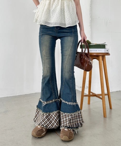裾のチェック柄が今っぽい★ ヴィンテージ漂う存在感のあるデニムパンツ ▼POINT ・古着屋にありそうなオーバーダイ加工と青みが強すぎないデニムがビンテージ感あふれるデニムパンツ ・裾の大胆に施されたチェック柄と切りっぱなしのフリンジ加工がインパクト抜群で主役映え♪ ・足がスラっと綺麗に見えるフレアシルエット ・やわらかい素材で履き心地もよく、デニム特有のごわつきが無くストレスフリーで着用可能 ▼STYLING ロゴTシャツやスウェット、ニットなどどんなアイテムとも相性◎ コンパクトなトップスと合わせるとスタイルアップ効果抜群 ウエスタンブーツやフリンジアイテムと合わせたヒッピースタイルがおすすめ! SOLLON.(ソルロン) fashion that reflects my personality あなたの毎日をもっと楽しく、もっと可愛く。 自分らしさとトレンドをファッションで表現するブランド ※ご覧のモニター・撮影環境により実際の商品と多少色味が異なって見える場合がございます。 予めご了承をお願いいたします。 ~お買い物をよりお楽しみいただく為に~ ▼”商品”のお気に入り登録♡ →ハートをクリック! 完売カラーの再入荷や、ラスト1点の通知、セールの際の通知を受ける事ができます。 ▼”ブランド”のお気に入り登録♡ 新商品や再入荷など、いち早くブランドのお得な情報を受け取ることができます。