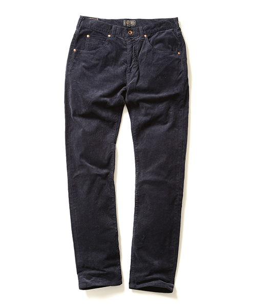定番のコーデュロイパンツです 14ウェールの細うねストレッチコーデュロイ素材を使用したパンツです。全体的にすっきりしたスリムシルエットは年代を超えたスタンダードアイテムです。通常より2本多いベルトループやバックポケットのカン留めは、ロデオブランドのなごりでもあります。