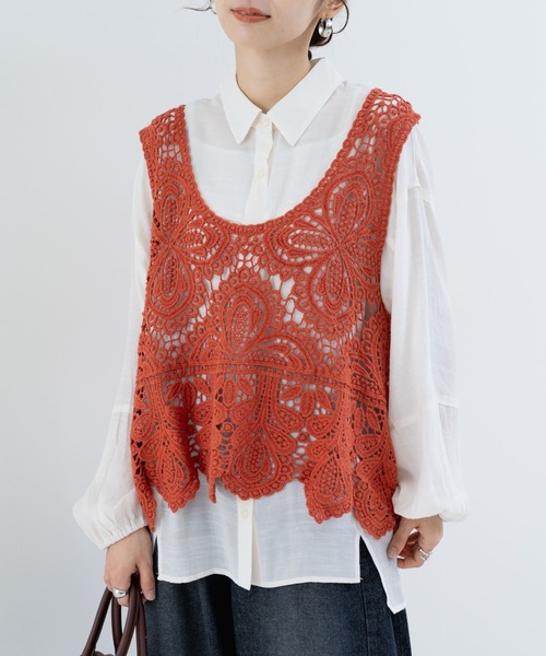 レイヤードの主役になる1枚【フラワーモチーフが可愛いかぎ編みレースベスト】 ■商品の特徴・繊細なフラワー柄のかぎ編みデザイン・軽やかなシルエットで着回し抜群・カラー展開豊富でコーデのアクセントに ■詳細説明Tシャツやシャツ、ワンピースとのレイヤードにぴったりなかぎ編みレースベスト。 フロントの裾が波型になっており、ナチュラルな抜け感を演出してくれます。 夏のコーデにも映えますが、ブラウスなどに重ね着をすることで秋コーデもアップデートしてくれる1枚です。 ■生地・素材感……………………透け感:あり(インナーの着用をおすすめします)伸縮性:なし生地の厚さ:薄手生地の柔らかさ:ややハリ感あり裏地:なしポケット:なし…………………… ■素材・混率情報……………………綿100%…………………… ■サイズ情報(cm)……………………こちらの情報はご確認後、追記をお願いいたします…………………… ■コーディネートカジュアルなTシャツや、きれいめなブラウスに重ねて着るだけでおしゃれ上級者に。 デニムパンツやスカートとも相性抜群で、ロングシーズン活躍します。 ■お気に入り登録★《お気に入り登録》でお得な情報がいっぱい★・「商品のお気に入り登録」で再入荷通知や、ラストの通知、セール通知も受け取ることができます・「ブランドのお気に入り登録」で新商品や再入荷など、お得な情報を受け取ることができます! ※サイズは平置きの状態で測った寸法になりますが、ニット素材のため個体差がございます。予めご了承ください。※商品画像は撮影時の光や角度により、実物の色味と異なって見える場合がございます。※撮影はサンプル品を使用しており、表示のサイズ感も実物とは若干異なる場合もございますので、予めご了承ください。※生産時期により色・素材・サイズ感など多少異なる場合がございます。予めご了承ください。※他のキャンペーンにより、期間中に価格が変動する場合があります。※セールは予告なく終了させていただく場合もあります。