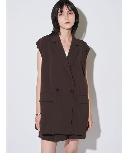 RELAXY TAILOVED GILET シャリ感ある素材でサラッとした風合いが清涼感あるオーバージレはさっと羽織るだけで様になるアイテム。 ゆとりあるサイジングで風通しも良く夏場でも着やすい1枚。 テーラー襟を細くシャープに深めにしており、前を閉めても女性らしくモードな雰囲気を醸し出します。 広めの肩幅も二の腕をカバーしてくれスッキリと見せてくれるバランス。 同素材のオールインワン、ハーフパンツとのセットアップコーディネイトもおすすめ。 ▼同素材展開シリーズ キャミオールインワン(品番:512540340701) タックハーフパンツ(品番:512540710401) ・・・・・・・・・・・・・・・・・ 裏地:なし 透け感:なし 伸縮性:なし 生地の厚さ:普通洗濯:手洗い可 ・・・・・・・・・・・・・・・・・ 【 お買いものにおすすめの便利機能! 】 ★商品のお気に入り登録 完売カラーの再入荷時や、ラスト1点の時、セール開始時にお知らせします。 ★ブランドのお気に入り登録 新商品や再入荷、セール情報など、いち早くブランドのお得な情報を受け取ることができます。 ぜひご活用ください。 ※実際にお届けする商品と仕様やサイズが異なる場合がございます。 また生産の都合上、お届け時期が前後する場合がございます。