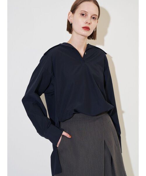 BIG COLLAR SKIPPER SH 甘さのないシャープな襟で1枚着としても、トレンド感のあるレイヤードスタイルにもおすすめの1枚。 サイドスリット入りで前後差をつけておりフロントをタックインした着こなしも可能。 上にニットなどをレイヤードした際にも裾がのぞく少し長めの丈感。 定番使いのオフホワイトと冬のアイテムにも相性の良いブルー、ネイビー、ラベンダーの4色展開。 冬にむけてラクーンカーディガンから衿を出したスタイリングもおすすめ。 ・・・・・・・・・・・・・・・・・ 裏地:なし 透け感:なし 伸縮性:なし 生地の厚さ:普通洗濯:手洗い可 ・・・・・・・・・・・・・・・・・ 【 お買いものにおすすめの便利機能! 】 ▽商品のお気に入り登録 完売カラーの再入荷時や、ラスト1点の時、セール開始時にお知らせします。 ▽ブランドのお気に入り登録 新商品や再入荷、セール情報など、いち早くブランドのお得な情報を受け取ることができます。 ぜひご活用ください。 ※実際にお届けする商品と仕様やサイズが異なる場合がございます。 また生産の都合上、お届け時期が前後する場合がございます。