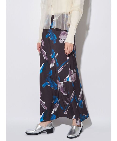 ORE GLINT NARROW SK オリジナルプリントを使用したナロースカート。 スタイリングに華やかさを添える、バイアス取りのサテンスカート。 とろみのある素材が生む滑らかな落ち感と裾に向かってなだらかに広がるシルエットが上品な印象を演出。 後ろウエストはゴム仕様なのでリラックス感のある履き心地を実現。 オリジナルプリントは鉱石のような奥行きと、にじみのあるタッチが特徴のニュアンス柄。 あえて輪郭を曖昧にすることで、抽象的でモダンな印象に。 ▼同素材展開シリーズ オーレグリントスキンカットソー(品番:512552721601) オーレグリントワンピース(品番:512550321301) ・・・・・・・・・・・・・・・・・ 裏地:あり 透け感:なし 伸縮性:なし 生地の厚さ:普通洗濯:手洗い可 ・・・・・・・・・・・・・・・・・ 【 お買いものにおすすめの便利機能! 】 ▽商品のお気に入り登録 完売カラーの再入荷時や、ラスト1点の時、セール開始時にお知らせします。 ▽ブランドのお気に入り登録 新商品や再入荷、セール情報など、いち早くブランドのお得な情報を受け取ることができます。 ぜひご活用ください。 ※実際にお届けする商品と仕様やサイズが異なる場合がございます。 また生産の都合上、お届け時期が前後する場合がございます。