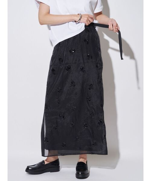 SPANGLE SHEER SK スタイリングの主役になるスパンコール刺繍のシアースカート。 オーガンジーに同色系のスパンコールで刺繍を施した素材を使用。 サテンカットソーのインナースカートがセットになっているので透け感を気にすることなく着用可能。 ウエストはグログランテープを使いラップスカートのような雰囲気に。 後ろウエストはゴム入りなので着心地も〇 サイドの高い位置からベントを入れ動きのあるデザイン。 シアースカート単品でスラックスやデニムに重ねたレイヤードスタイルも楽しめます。 同素材のブラウスとのセットアップコーディネイトもおすすめ。 ▼同素材展開シリーズ スパングルシアーブラウス(品番:512550420701) ・・・・・・・・・・・・・・・・・ 裏地:なし/ペチコート付き 透け感:あり 伸縮性:なし 生地の厚さ:薄い洗濯:手洗い可 ・・・・・・・・・・・・・・・・・ [ペチコート]総丈90cm ウエストゴム上がり64cm ヒップ100cm 裾まわり95cm【 お買いものにおすすめの便利機能! 】▽商品のお気に入り登録完売カラーの再入荷時や、ラスト1点の時、セール開始時にお知らせします。 ▽ブランドのお気に入り登録新商品や再入荷、セール情報など、いち早くブランドのお得な情報を受け取ることができます。ぜひご活用ください。 ※実際にお届けする商品と仕様やサイズが異なる場合がございます。また生産の都合上、お届け時期が前後する場合がございます。