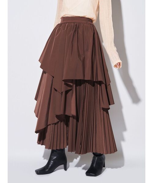 ASYMMETRY PLEAT MIX SK ランダムにレイヤーされたドレープパーツとプリーツパーツが裾に向けてリッチなボリューム感を演出。 1枚で様になるデザインなのでシンプルなトップと相性良く存在感抜群の1着。 後ろウエストはゴム仕様なので締めつけ感なく綺麗にフィット。 ・・・・・・・・・・・・・・・・・ 裏地:あり 透け感:なし 伸縮性:なし 生地の厚さ:普通 ・・・・・・・・・・・・・・・・・ 【 お買いものにおすすめの便利機能! 】 ▽商品のお気に入り登録 完売カラーの再入荷時や、ラスト1点の時、セール開始時にお知らせします。 ▽ブランドのお気に入り登録 新商品や再入荷、セール情報など、いち早くブランドのお得な情報を受け取ることができます。 ぜひご活用ください。 ※実際にお届けする商品と仕様やサイズが異なる場合がございます。 また生産の都合上、お届け時期が前後する場合がございます。