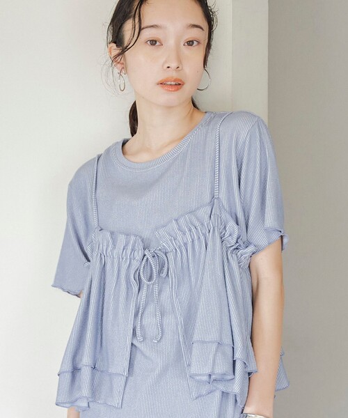 着こなし無限大。2WAYキャミで楽しむ夏コーデ。☆オススメポイント☆・大好評ロンTセットがTシャツ仕様で夏に最適!・前後2WAYフリルキャミでコーデ自在・単品使いもOK!着回しの幅が広がるセットアイテム■デザイン/素材人気を博したロンTセットアイテムが、Tシャツバージョンで待望の再登場。今季は新色として、爽やかなライムグリーンと明るいオレンジが加わり、より夏らしい印象にアップデートされています。やわらかく伸びの良い細リブカットソーを使用したベーシックなTシャツと、前後2WAYで使えるフリルキャミソールのセットアイテム。それぞれ単体でも着用可能で、組み合わせ次第でコーデの幅がグンと広がります。シンプルなTシャツに、フリルキャミを重ねて甘さをプラスすれば、カジュアルながらもフェミニンな着こなしに。気分やシーンに合わせて前後を入れ替えたり、別々に着たりできる、着回し力優秀な万能セットアップです。透け感:ナチュラルのみややあり生地の厚さ:普通光沢感:なし裏地:なし家庭洗濯:可能(ネット使用)【注意点】※撮影商品はサンプルの為、実際の仕様と異なる場合がございます。※画像の商品は光の照射や角度、お使いのモニター環境により、実物と色味が異なる場合がございます。スタジオ物撮りの画像が実物の色味に一番近くなっております。※予約商品の場合、お届け予定はあくまでも目安となります。生産の都合上、お届け時期が前後したり実店舗入荷時期とずれる場合がございますので、あらかじめご了承ください。品名:ハイショクリブキャミソールセットHS品番:76256000000