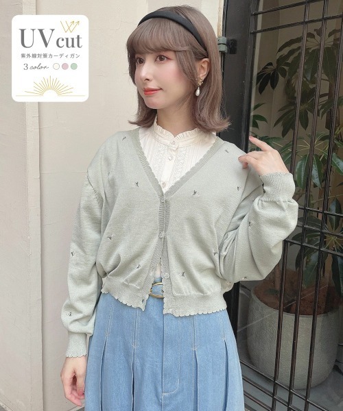 ■デザインポイント 小花刺繍がキュートなニットカーディガン。 UV効果により日焼け防止はもちろん、冷房対策としても一着あると便利です。 今季トレンドの小花モチーフも、刺繍を施すことでF i.n.tらしく落とし込んだ一品です♡ ■オススメスタイリング ブラウスやシャツ、ワンピースなど幅広いアイテムに羽織りやすいのがポイント◎ ミニスカートと今っぽくガーリーに着こなすのもおすすめです。 『 着るだけでUVカット!』 さらりと羽織るだけで紫外線から素肌を守ってくれるカーディガン。 生地には紫外線の透過をやわらげる加工が施されています。 おでかけや旅行のお供に♪ ====== 裏地:なし 生地感:ふつう ====== ※裏返してネットに入れて洗って下さい。 ▼Fint/フィント 50~70年代のクラシカルなヴィンテージデザインにトレンド感をプラスしたレトロ&ガーリースタイルをお届け。 古着屋で一点ものを見つけるような【ときめき】を感じられるブランドです。 70s~90sストリートからイメージしたアイテムにレトロ&ガーリー要素をMIXした トレンド感あるカジュアルアイテムが揃う「Pink Label」のアイテムも展開中! ▼商品のお気に入り登録▼気になるアイテムの♡をクリックしてお気に入り登録すると残り1点の通知、完売カラーアイテム再入荷の通知、お得な通知が届きます。 ▼ショップお気に入り登録▼ ショップからの新作商品やお得なイベント情報など、いち早くブランドからの情報を受け取ることができます。
