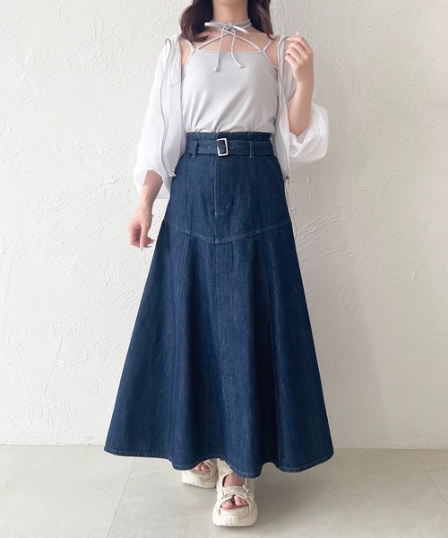 ◆簡単に大人可愛いコーデがキマル!デニムロングスカート♡歩く度にフレアな揺れ感が可愛らしいアイテム!ウエストベルトでお好みのサイズ感に調節いただける仕様となっております。ハイウエスト位置に切り替えラインが入ることで自然と華奢見えが叶います◎スポサンやスニーカー合わせのカジュアルスタイルから、パンプス合わせの大人フェミニンスタイルまで、足元で雰囲気を変えていただけます♩【マルチサイズとは】豊富なサイズ展開のため、「骨格ストレート/骨格ウェーブ/骨格ナチュラル」など様々な体型の方も、自分に合った1枚が見つかる新しい洋服の買い方です。「低身長~高身長」「やせ型~ぽっちゃり」など小さいサイズから大きいサイズまで、最大56サイズご用意しています。定番アイテムから、ビッグシルエットなどのトレンドアイテムまで幅広く展開中!※マルチサイズは、ZOZOTOWNのみでのお取り扱いになります。※サンプル品で撮影しているため、ボタンやファスナーなど一部の仕様が若干異なる場合がございます。【注意事項】この商品はご注文を受けてから生産を行う受注生産商品のため、発送までにお時間をいただきます。カート投入後の画面にて発送日の目安が表示されますのでご確認ください。
