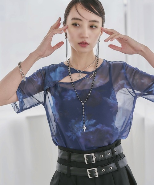 ーーー オリジナルのフラワーモチーフが目を惹く デザインシアーカットソー ーーー point □オリジナルのフラワーモチーフ柄を落とし込んだシアーTシャツ □フロントカットアウトとUネックデザインで、程よい肌見せが叶えられる □さらっとした伸びの良いシアー素材の為、夏でも涼しく着用が可能 □一枚着としてはもちろん、秋口はアウターのインナーとしても万能 styling 骨格ナチュラル:ルーズなワイドパンツや、デニムパンツでカジュアルなスタイリングが◎ビスチェやキャミソールのレイヤードもオススメです。 骨格ウェーブ:上半身の華奢さを生かしてシンプルな一枚着がオススメ。ハイウエストのスカートや、フレアパンツを合わせて、脚を長く見せるスタイリングが◎ 骨格ストレート: タイトスカートやストレートパンツと合わせ、シックにまとめるのがオススメです。ジレやジャケット合わせも◎ ※加工を施した画像を使用しております。 実物と色味が異なる可能性があるため、色味は詳細後ろにある生地寄り画像を参考にお願いいたします。 あらかじめご了承下さい。