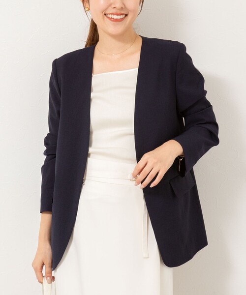 ◇25SS◇ NOLLEY'S ◆Point ・Tシャツやノースリーブなどにさっと羽織るだけで、エレガンスな雰囲気になるノーカラージャケット ・リサイクルポリエステルを使用したサスティナブルな素材を使用 ・日本でならではの染めと風合いの技術で程よい透け感と軽さ特徴 ・ドライな風合いで清涼感があり、きちんと見えして、夏も涼しく着用可能 ・ヒップの隠れる少し長め丈 ・ワイドパンツやフレアスカートなど涼しげなボトムスとの相性抜群◎ ・同シリーズのテーラードジャケット(5-0035-4-05-005)、ワンピース(5-0035-4-07-004)もあり ●お取扱い上のご注意● 末永くご愛用頂くために、アテンションタグを必ずご確認の上、着用又はお取り扱い下さい。 気になる商品は、お気に入り登録がオススメです! クーポン情報、入荷情報が、通知されるようになります。 ※手洗い可 ※店頭及び屋外での撮影画像は、光の当たり具合で色味が違って見える場合があります。商品の色味は、スタジオ撮影の画像をご参照下さい。 ※商品画像に関しては出来る限り忠実に表示出来るよう努めておりますが、お客様がご利用のモニターの設定及び特性により、実際の商品と比較し色味に若干の誤差が生じる場合があります。 ※画像の商品はサンプルとなりますので実際の商品と仕様、加工、サイズが若干異なる場合がございます。