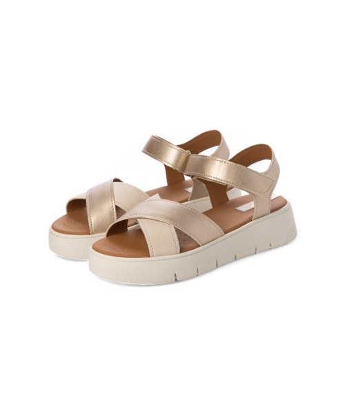 ボリュームのあるソールが目を引くクロスストラップサンダルです。足をしっかりと包み込むデザインで、安定感のある履き心地を実現。面ファスナー仕様で脱ぎ履きしやすく、フィット感の調整もスムーズです。クッション性のあるインソールが、長時間の歩行も快適にサポートします。