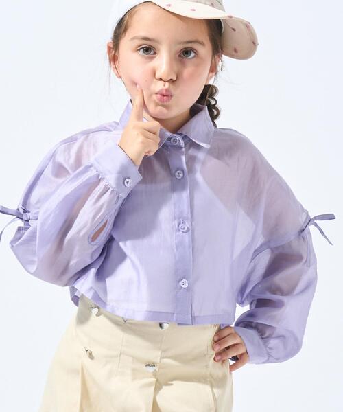 【デザイン】 肩の部分に抜け感のあるデザインを入れた短め丈の長袖シャツです。 トレンドのシアー素材は、ほどよく透け感がありインナーとのレイヤードコーデが楽しめる1枚。 短めのクロップド丈はパンツでもスカートでもバランスよく着こなせて脚長効果も期待できそう! 夏の冷房対策にもおすすめです。 【素材】 透け感のあるシアー素材を使用しています。 ※照明の関係により、実際よりも色味が違って見える場合があります。また、パソコン・スマートフォンなどの環境により、若干製品と画像のカラーが異なる場合もございます。 店舗へのお問い合わせ商品番号:122-83014 ●製品寸法: 13(130cm):着丈32cm B92cm 袖丈31cm 肩幅54cm 14(140cm):着丈35cm B96cm 袖丈33cm 肩幅57cm 15(150cm):着丈38cm B100cm 袖丈35cm 肩幅60cm 備考:
