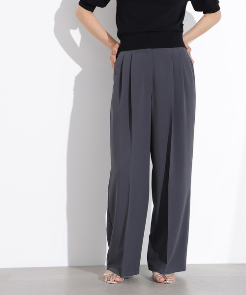 さらりとしたドライタッチな風合いで、軽さも魅力。暑い時期も快適なはき心地を叶えるワイドパンツ。後ろウエストはゴム仕様でフィットします。シンプルなデザインなので、キレイめからカジュアルなコーディネートにも品よく映えます。<素材>ややシボのある表面感でドライタッチな素材を使用しています。<詳細>仕様・前ファスナー裏地・ベージュのみあり透け感・なし / 光沢・なし / 伸縮性・なし 生地の厚さ・薄手【洗濯機洗可】洗濯機(非常に弱い)で簡単にお手入れができるアイテムです。※こちらの商品は、裏返してネットに入れていただくことでご家庭での洗濯が可能です。詳しいお取り扱いについては、付属のアテンションタグや洗濯表示を必ずご確認ください。●取り扱いについては、商品についている品質表示でご確認ください。●撮影はサンプル商品で行っている為、仕様とサイズが異なる場合がございます。●スタジオ及び屋外で撮影した着用画像は、光の当たり具合やご覧のモニターによって色味が違って見える場合があります。予めご了承ください。●生産時期により色・素材・サイズ感など多少異なる場合がございます。予めご了承ください。〇返品・キャンセルについて・着用・洗濯後の返品・ご交換は致しかねます。・商品到着後、着用または使用前に商品を確認して頂きますようお願い致します。≪お買い物をよりお楽しみいただくために!≫・「商品のお気に入り登録」再入荷通知や、ラストの通知、セール通知も受け取ることができます。・「ブランドのお気に入り登録」新商品や再入荷をはじめ、タイムセールやクーポンなどいち早くブランドお得な情報を受け取ることができます。