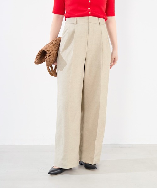 麻混素材でナチュラルな表情感のあるチノワイドパンツ。カジュアルになりすぎないよう、スラックスのようなバランスとややワイドシルエットに仕上げました。丈をやや長めに設定し、クリーンでモダンな雰囲気が魅力な1本でキレイ見えするシルエットに。スタイリングを今っぽく引き締めて見せてくれるトレンドアイテムです。【fabric】麻混オックスストレッチ素材。染色前の工程と染色後、合計2回のタンブラーを施すことでナチュラルな表情感を実現しています。※こちらの商品は麻を使用しております。素材の特性上、表面に織フシ(太い線上のもの)や毛羽立ちがありますが、素材の特徴としてご理解ください。--------------------------------------透け感:なし裏地:なし伸縮性:あり光沢感:なし生地の厚さ:普通--------------------------------------水洗い可素材特性:接触冷感/吸湿速乾/UVカット*ポケット有*詳しくは商品の洗濯表示にてご確認をお願い致します。*商品画像はできる限り実物の色に近づけるよう徹底しておりますが、お使いのデバイスのモニター設定、お部屋の照明等の閲覧環境により実際の色味と異なって見える場合がございます。*画像の商品はサンプルです。実際の商品と仕様、加工が若干異なる場合があります。予めご了承くださいませ。▼商品のお気に入り登録お気に入りアイテムの値下げ・再入荷・在庫1点などの通知を受け取ることができます。 ▼ブランドのお気に入り登録新商品や再入荷、クーポン配布などのお得な情報を受け取ることができます。