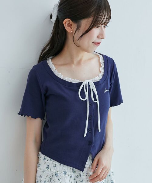 一枚で着映えるレイヤード風トップスが登場! ■デザイン キャミソールをレイヤードしたようなドッキングデザインで、旬の着こなしがすぐに完成するトップス。 ネックには華奢なリボンをあしらい、さりげなく甘さをプラスしました。 オリジナルロゴ刺繍がさりげないアクセントに◎ ■サイズ感 伸縮性に優れたリブ生地を使用しているので、快適な着心地を実現。 ウエストにフィットするサイズ感にもこだわり、スタイルアップ効果も期待できます。 ※ネックポイントからの着丈:42cm ■スタイリング ミニスカートを合わせれば、韓国風のガーリーコーデに。 デニムと合わせると、上品で大人っぽいスタイルが完成します。 スウェットパンツでカジュアルダウンすれば、今年らしい着こなしに◎ ・・・・・・・・・・・・・・・・・・・・・・ 透け感:なし 裏地:なし 伸縮性:あり 光沢感:なし 生地の厚さ:普通 ・・・・・・・・・・・・・・・・・・・・・・ ■商品のお気に入り登録 再入荷通知やのこりわずか、お得なプライスダウンの情報も受け取ることができます。 ぜひご登録ください◎ ※サンプルでの撮影の為、製品と仕様が異なる場合がございます。 ※商品の色味は、撮影場所や光のあたり具合などにより色味が違って見える場合がございます。 また、お客様のお使いのモニター環境などにより色味が異なって見える場合がございます。 予めご了承の上ご注文下さい。