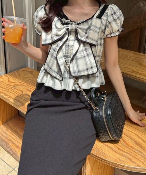 デコルテを美しく見せる、ビッグリボンが映えるブラウスが登場。■デザイン大きなリボンデザインが目を引く、立体的なシルエットとシャツライクが大人可愛い印象を引き立ててくれる一枚。ふんわりとしたパフスリーブが可愛らしく、袖口はゴム仕様でふんわりとしたシルエットをキープできます。クリアビーズとパールを使用した肩チェーン付きで、気分に合わせて取り外しも可能です◎■サイズ感肩紐で長さ調整が可能です。(チェーンの長さ調整は出来かねます。)全面シャーリング仕様なので、ストレスフリーに着用いただけます。■スタイリングデニムにもスカートにも合わせやすく、カジュアルにもきれいめにもマッチ。幅広いスタイリングが楽しめる、大人フェミニンな一枚です。・・・・・・・・・・・・・・・・・・・・・・透け感:あり([オフ]袖・裾部分)裏地:なし伸縮性:あり(シャーリング・肩口・袖口)光沢感:なし生地の厚さ:普通・・・・・・・・・・・・・・・・・・・・・・■商品のお気に入り登録 再入荷通知やのこりわずか、お得なプライスダウンの情報も受け取ることができます。ぜひご登録ください◎※サンプルでの撮影の為、製品と仕様が異なる場合がございます。※商品の色味は、撮影場所や光のあたり具合などにより色味が違って見える場合がございます。また、お客様のお使いのモニター環境などにより色味が異なって見える場合がございます。予めご了承の上ご注文下さい。[アイボリー・ブラック]表地/ポリエステル93% レーヨン7% 裏地/ポリエステル100%