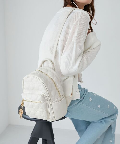 機能性とかわいらしさを兼ね備えた高見えリュック♪■デザインキルティングでかわいらしさをプラスしたリュック。大きな外側ポケットはコスメやカメラアイテムなどを入れるのにもぴったり♪ショルダーにはチェーンを使用しているのでカジュアルにならず、かわいらしく使用することができます。■サイズ感500mlのペットボトルが入ります。その他にも財布、ポーチなど十分な収納力があります◎※ショルダーストラップ:88~105cm■スタイリング両手を開けることができるので、推し活の現場やテーマパークにもぴったりです♪■商品のお気に入り登録 再入荷通知やのこりわずか、お得なプライスダウンの情報も受け取ることができます。ぜひご登録ください◎※サンプルでの撮影の為、製品と仕様が異なる場合がございます。※商品の色味は、撮影場所や光のあたり具合などにより色味が違って見える場合がございます。また、お客様のお使いのモニター環境などにより色味が異なって見える場合がございます。予めご了承の上ご注文下さい。※こちらの商品はWEB限定販売商品となっております。