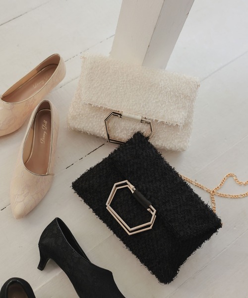 シャギー素材がおしゃれな3WAYパーティーバッグ。 スタイリッシュな見た目とシャギー生地が大人っぽく上品な雰囲気を醸し出します。 大きめなメタルバングルもアクセントに。 取り外し可能なチェーン付きでクラッチ・ハンド・ショルダーで使える3way仕様。 荷物の多さやシーンに合わせて変えていただけるので、とっても便利。 ご祝儀や長財布、その他必需品がすっぽりと入るぐらい 幅と容量がしっかりとあります。 普段使いもしやすいデザインなので、色んな場面で使えるバッグです。 【備考】 ・内ポケット×1 ・取り外し可能チェーン付き ※商品画像は、光の当たり具合やパソコンなどの閲覧環境により 実際の色味と異なって見える場合がございます。 予めご了承ください。 ◼オススメシーン◼ 結婚式・2次会(二次会)・1.5次会・披露宴・お呼ばれ・成人式・同窓会・謝恩会・パーティー・演奏会・食事会まで、多様なシーンのコーディネートにご使用いただけます。 ◼商品のお気に入り登録 ◼ 完売カラーの再入荷通知や、ラスト1点の通知、セールの通知も受け取ることができます。 気になるアイテムは《お気に入り登録》が絶対オススメ! ◼ブランド紹介◼ Dress Shop " Dorry Doll"(ドリードール) 結婚式やパーティーなどのフォーマルシーンはもちろん、発表会、謝恩会、入学式や卒業式などのセレモニーシーン、そして女子会や食事会などのカジュアルシーンなど、多様なシーンにご使用いただけるドレススタイルをご提案させていただいております。 また、トータルコーディネートがきるよう、羽織や、パーティーバッグ、パーティーシューズ、アクセサリーなども豊富に揃えております。