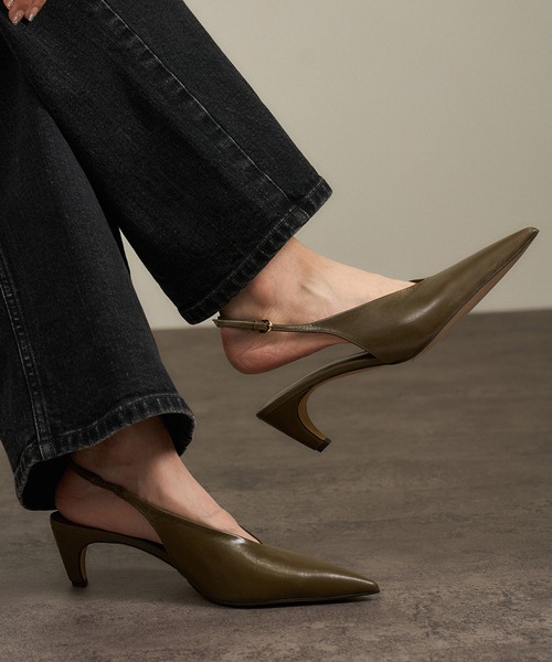 山羊革を使用した、モードとフェミニンを両立するバックストラップパンプス■素材 表革: 程よい艶と柔らかさを兼ね備えた上質な山羊革を使用。日本製ならではの透明感と奥行きのあるカラーが魅力です。 山羊革特有の自然なシボ感を活かしながら、後加工でクラッシュ感をプラスし、表情豊かな一足に仕上げました。 裏革: ライニングにはスムースな馬革を使用。馬革ならではのハリが、履き口やフォルムに凛とした輪郭を与え、足入れのたびに上質さを実感できます。 吸湿性にも優れ、履くほどに足に馴染んでいく天然皮革ならではの快適さも魅力。 ■デザイン / シルエット 繊細なストラップ×シャープなポインテッドトゥが目を惹く、エッジィかつフェミニンなバックストラップパンプス。 構築的なヒールは、ミニマルなデザインにほんの少しの遊び心を添え、大人の足元に印象的なニュアンスをプラス。 中敷きやライニングは同系色で統一し、全体にモード感のある洗練された表情に仕上げました。 約5cmの程よいヒール高で安定感があり、デイリーにも活躍するアイテムです。カラーはブラックとオリーブの2色展開。 ■スタイリング提案 ・デニム×白Tのシンプルコーデに一点投入して、抜け感あるモードスタイルに ・キャミワンピースやフレアスカートなど、フェミニンなアイテムとの相性も抜群 ・オールインワンやテーラードパンツと合わせれば、都会的でマニッシュなスタイリングにも 春夏は素足で、秋はソックス合わせで長く楽しめる一足。装いのアクセントにも、日常使いにも頼れる存在です。 ■サイズ感 (表記)36→(日本サイズ)23.0cm (表記)36.5→(日本サイズ)23.5cm (表記)37→(日本サイズ)24.0cm (表記)37.5→(日本サイズ)24.5cm ----------------------------- 【W S(ドゥーブル)】 W(DOUBLE)S pieds nus : 裸足 自然 de'licatesse : 洗練 優雅 連なるSを含む二つの言葉からインスピレーションを得てうまれたW S(ドゥーブル) けっして直接的ではなく、そこにあることで完成される サロンの美を形成するために生まれた新しいアクセサリーコレクションです。 ※画像の商品は光の照射や角度、お使いのモニター環境(パソコン・スマートフォン)により、 色味が違って見える場合があります。 ※商品の色味は、商品アップ画像をご参照ください。