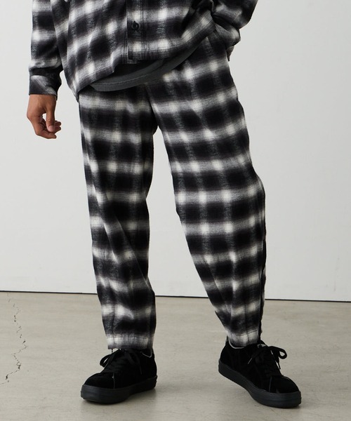 ワイドシルエットのチェックパンツ。発色の良いオンブレチェックのネル地を使用。裾の両サイドに施したファスナーで2WAYのシルエットを楽しむことができるVIRGOらしい遊びの効いた一本です。※同シリーズのシャツも展開※アイテムや素材のデザインによってサイズ差が異なります。 サイズスペックを確認の上ご購入ください。【What is VIRGOwearworks】VGWの「デザイナー自身が感じた事柄やメッセージをアパレルというキャンバスで表現したい」という事をコンセプトに2003年に発進。MUSIC, ART, LIFE, etc...音楽、芸術、生活、いつでもそれはそばに。根源に「音」を感じさせる洋服作りが特徴のブランドである。【問い合わせ】※その他の新作などは渋谷区神南にあるVIRGOwearworksの直営店「VIZ store-tokyo」にて実際の商品をご覧、ご試着いただけます。詳しくはVIZ store-tokyoへHPをご覧頂きご来店やお電話、メールにてお問い合わせください。VIZ store-tokyo150-0041 東京都渋谷区神南1-3-1 1&2FTEL : 03-6416-5757MAIL : viz@vgw.jp【その他】※画像の商品はサンプルの為、実際の商品とは仕様やカラー、加工、サイズ、素材感など異なる場合がございます、ご了承お願い致します。※生産の都合上、お届け時期が前後する場合がございます。※入荷状況により、お客様への発送が店頭販売より遅れる場合がございます。「ブランド登録」「お気に入り登録」入荷情報やクーポン、再入荷通知などを受け取ることが出来ますので、是非ご登録ください。