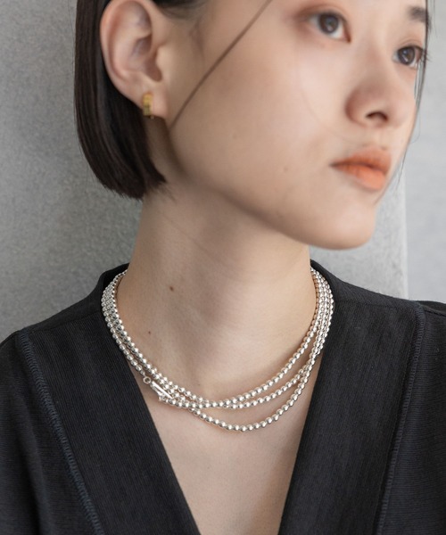 ーーーコーディネートのアクセントになるヘマタイトを使用したロングネックレス一重でも二重でも着用が可能なので、その日の雰囲気でアレンジしていただけますーーー