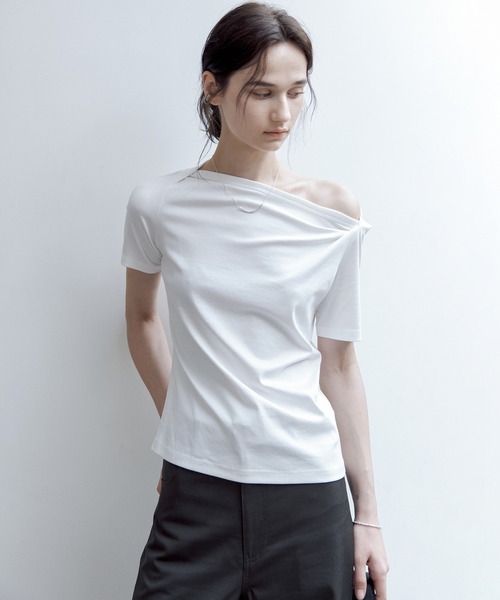 ■スーピマコットン ボートネックTシャツ スーピマコットン混の上質素材を使用した、なめらかな光沢感が魅力のデザインTシャツ。直線的なボートネックと長めの袖丈で、シンプルながらも大人らしい上品なバランスに仕上げました。 肩部分は重ね仕様になっており、生地を少しずらしてオフショルダー風にも着用できる2WAYデザイン。デコルテをきれいに見せながら、さりげない肌見せで抜け感のあるスタイルが完成します。 適度にハリのあるコットン素材で体のラインを拾いすぎず、きれいなシルエットをキープ。通勤スタイルからデイリーまで幅広く活躍する一枚です。 【Fabric】 ・なめらかな表面感 ・ほどよいハリ感 ・通気性あり ・吸湿性良好 ・軽いストレッチ性あり 【tageechita】 「in time」 実用美学を重視しつつ、ハイブリッドスタイルとミニマリストスタイルのバランスを取り入れ、唯一無二のオリジナルスタイルを発信します。 時間の流れに応じたコレクションを提案するブランドです。 Instagram : @tageechita_jp ・商品のお気に入り登録再入荷、残り1点などの通知を受け取ることが出来ます。 ・ブランドのお気に入り登録新商品や再入荷、ショップのおすすめトピックスなど、いち早くブランドのお得な情報を受け取ることができます。