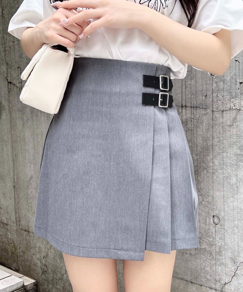 【サイドベルトとアシンメトリーのプリーツで表情をプラス】 台形シルエットでスタイルアップも狙えるミニ丈のスカパンです。 スカートのように見えますが裏地がパンツ型のスカパンは1枚で安心して着られるのも◎。 きちんと感のある上品な生地で仕立てているので普段使いはもちろん、お出かけシーンにもおすすめです。 バックウエストはゴム入りで着心地も快適。 ・バックウエストゴム ・サイドファスナーあり 【以下グレー参考。カラーにより多少の誤差あり】 ・透け感:透けない ・伸縮性:なし(表地) ・生地の厚さ:普通 ・裏地:あり