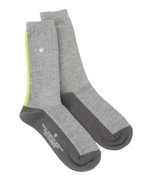 スターネオンラインソックス ■デザイン やや薄手のリブ素材を使用した、軽やかな履き心地のデザインソックス。 バックシームにあしらったネオンカラーのラインが、足元に旬なアクセントを添えるアイテム。 サイドには星の刺繍をプラスし、シンプルな中にさりげない個性を演出。 ベーシックなボディカラーのためスタイリングに合わせやすく、スニーカーやサンダルからちらっと覗くディテールが春夏らしいポップな印象に。 ユニセックスで合わせていただける2サイズ展開でギフトにもおすすめ。 【サイズ表記】 1…23㎝~25㎝(レディースサイズ) 3…25㎝~27㎝(メンズサイズ) ※商品画像は撮影時の光や角度により、実物の色味と異なって見える場合がございます。