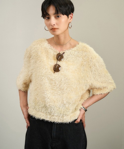 主役級の華やかさ。前後2WAYで着回し自在のジャガードカーディガン■デザイン / シルエット 前後2WAYで着用可能な、着映え力の高いジャガードプルオーバーカーディガン。 ボタンを前にすればカーディガンとして、後ろにすればプルオーバー風に楽しめる2WAY仕様。 異素材のボタンディテールがさりげないアクセントになり、シンプルながらもこなれ感を演出。 ネックラインは程よく開いており、顔まわりをすっきりと見せてくれます。 華やかな素材感で、1枚で着映える優秀アイテムです。 ■素材 華やかで奥行きのある表情が魅力の、密度感のあるジャガード素材を使用。 立体感のある毛足がラグジュアリーなムードを醸し出し、秋冬らしさを感じさせる素材感。 見た目の存在感と軽やかさを両立した、季節の変わり目にもぴったりのファブリックです。 ご自宅での手洗いが可能。 デイリーに着回しやすく、お手入れのしやすさも嬉しいポイントです。 ■コーディネート ・デニムやスタイルアップパンツと合わせて、デイリーカジュアルに ・ロングスカートと合わせれば、女性らしいフェミニンスタイルにもマッチ ・オフィスにはテーパードパンツで、きちんと感と抜け感を両立したコーデに ・前開きで羽織れば、ライトアウターとしても活躍 ・インナーにシアーやハイネックを重ねれば、秋冬のレイヤードスタイルにも対応 秋口から春先までロングシーズン楽しめる、着回し力の高い一枚です。 ■モデル身長:165cm 着用サイズ:F(ショートヘア) ■モデル身長:166cm 着用サイズ:F(ミディアムヘア) ーーーーーーーーーー 裏地:なし 光沢感:なし 透け感:なし ポケット:なし 伸縮性:なし 生地の厚さ:やや薄手 ーーーーーーーーーー ※画像の商品は光の照射や角度、お使いのモニター環境(パソコン・スマートフォン)により、 色味が違って見える場合があります。 ※商品の色味は、商品アップ画像をご参照ください。