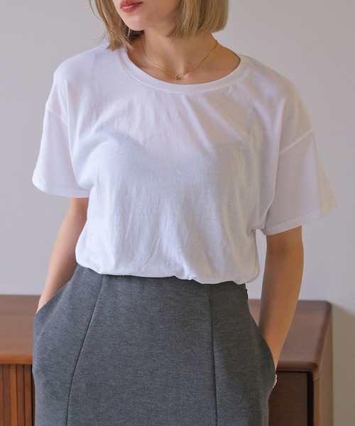 定番アイテムこそこだわりたい、着心地抜群な大人のこなれTシャツ落ち感のあるさらりとした素材が心地よいTシャツ。ベーシックなクルーネックデザインながら、ボディラインを拾わないリラクシーなサイジングで肩の力が抜けた着こなしに。一枚でさらっと着るのはもちろん、レイヤードスタイルのインナーとしても活躍してくれます。カラバリで揃えておきたい定番アイテムです。アウトドアなどのアクティブなシーンや、カジュアルなスニーカー合わせのスタイリングもおすすめ。---------------------------------透け感:あり裏地:なし伸縮性:あり光沢感:なし生地の厚さ:薄め---------------------------------▼お取り扱い上の注意※お手入れの際は商品の縫込みネーム・アテンションを必ずご確認ください。家庭洗濯〇(40℃限度。手洗いのみ)漂白×タンブル乾燥×日陰での平干しアイロン〇(低温110℃まで。スチームアイロン×)ドライクリーニング〇(弱い処理。石油系溶剤)ウェットクリーニング〇(非常に弱い処理)・染色過程や素材の特性上、特有のにおいが残る場合ございます。気になる場合は陰干しか、お洗濯されることでにおいは減少いたします。・洗濯時、ネットを使用して下さい。・形をととのえてから干して下さい。・色物と白物一緒に洗濯しないで下さい。濃色の製品は摩擦(特に湿った状態での摩擦)や、汗や雨などで濡れた時は他の衣料や下着(特に白物)に色移りする場合がありますので、十分ご注意下さい。 お洗濯/クリーニングの際は、色落ちすることがありますので、単品洗いをおすすめします。 また、他の淡色物に色移りすることがありますので、すみやかに処理(脱水・乾燥)するようお願いいたします。 以上の点を十分ご留意の上、お取扱い下さい。