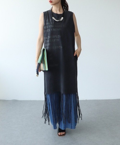 [RISLEY / リズレイ] フリンジヘムロゴワンピース 裾の長めのフリンジがダイナミックに動いてくれるキャッチーなアイテム。カットソー素材なので着やすくロングシーズンコーデに取り入れて頂けます。 サイドから後ろにかけてわたるロゴプリントがオシャレ! あえてシームを加えているのでプリントの段差がでざいように拘っているのが技あり! デニムパンツなどのボトムに相性抜群です。 -------------------------------------- 透け感:なし 裏地:なし 伸縮性:あり ケア方法:手洗い可 ※お洗濯の際は洗濯表示を必ずご確認ください。 -------------------------------------- <コーディネートmodel160cm> <詳細画像model162cm> [RISLEY / リズレイ] 国内やヨーロッパでのバイイングを豊富に経験したクリエイター達による新進気鋭の国内ブランド。 先進的な女性像とブランド独自のオリジナリティを具現化した洗練されたデザインを提案する。