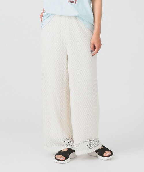 箔プリントで旬顔な1本■デザインレース生地に箔プリントを施した、トレンド感あふれるイージーパンツ。甘すぎないレースと、さりげなくきらめく箔が絶妙なバランスでカジュアル感をプラスします。裏地付きで安心して着用でき、リラクシーな穿き心地ながら、程よい太さのストレートシルエットが幅広いトップスに合わせやすいのが魅力です。■コーディネートロンTや半袖Tシャツと合わせれば、ぐっとラフでカジュアルな印象に。お尻が隠れる丈のビッグシャツや長めのトップス、ワンピースとのレイヤードスタイルもおすすめです。着回し力が高く、デイリーユースからちょっとしたお出かけまで幅広く活躍します。■サイズウエストはゴム仕様で、締め付け感がなく快適な履き心地。■素材さらっとした肌触り。■ケア方法手洗い可(詳細は商品についている品質表示ラベルをご覧ください)【OFF WHITE】BEAMS STAFF:H164 Size:ONE SIZE【BLACK】Model:H165 B77 W57 H85 Size:ONE SIZE※光の当たり具合やパソコンなどの閲覧環境によって実際の色味と異なって見える場合がございます。予めご了承ください。※商品の色味は商品単体で撮影した画像をご参照ください。