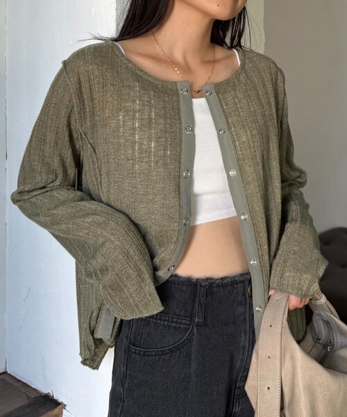 程よい透け感が大人っぽい♡”ヘルシー×細見え”が叶うシアートップス■デザイン程よい透け感のある軽やかなシアー素材が魅力。細かい針抜き編みで繊細な縦ラインが強調されるので、さりげなくスタイルアップ効果も。フロントはスナップボタン仕様で、さっと羽織れて着脱が楽ちん◎前後2WAYでも着用できるので、ちがった雰囲気を楽しむことができます♩夏の冷房対策から肌寒い時期まで、ロングシーズン着回しができる1枚です!■スタイリングTシャツやキャミの上にさらっと羽織るだけで、グッとこなれ感が♩ボタンを閉じて、1枚でも着用可能なので着回し力も抜群です。コンパクトなシルエットでトレンドのワイドパンツとの相性も◎長すぎない丈感はスカートにも合わせやすいです!■お手入れ方法洗濯:洗濯ネットを使用し、30℃を限度とし非常に弱い洗濯ができるタンブル乾燥:不可アイロン:あて布を使用し、110℃を限度としてアイロン仕上げができる・・・・・・・・・・・・・・・・・・・・・・透け感:あり裏地:なし伸縮性:あり光沢感:なし生地の厚さ:普通・・・・・・・・・・・・・・・・・・・・・・▼気になる商品をお気に入り登録ハートをクリックして《お気に入り登録》がオススメです!※画像の商品はサンプルを使用しております。実際の商品と若干の仕様が変更になる場合がございますので、予めご了承の上ご注文くださいますようお願いいたします※屋外の光や照明の当たり具合で、実際の商品の色味とカラー別画像の色味に若干の違いが発生する場合がございます。詳細画像と併せてご確認の上、ご注文いただきますようお願い致します。※独自のタイムセールなどの施策により、実店舗と価格差が発生する場合がございます。※実際の店舗在庫につきましては、各店舗に直接お問い合わせください。