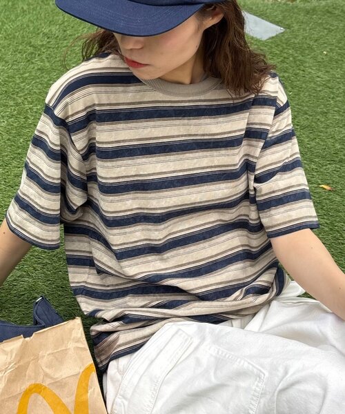 ヴィンテージっぽいボーダーが魅力☆ コーデのアクセントになる”プチプラTシャツ” ■デザイン やや太めのボーダーで、メンズライクな印象に♩ 加工っぽいデザインを施し、ヴィンテージ風に仕上げました。 ゆとりのあるサイズなので、体のラインを拾わないのも嬉しいポイント◎ デニムやワイドパンツと合わせたカジュアルコーデはもちろん、 シャツやジャケットのインナーとしても使いやすいです! ユニセックスデザインなので、おそろいやプレゼントとしても♡ ■お手入れ方法 洗濯:洗濯ネットを使用し、40℃を限度とし非常に弱い洗濯ができる タンブル乾燥:不可 アイロン:あて布を使用し、110℃を限度としてアイロン仕上げができる ・・・・・・・・・・・・・・・・・・・・・・ 透け感:なし 裏地:なし 伸縮性:あり 光沢感:なし 生地の厚さ:普通 ・・・・・・・・・・・・・・・・・・・・・・ ▼気になる商品をお気に入り登録 ハートをクリックして《お気に入り登録》がオススメです! ※画像の商品はサンプルを使用しております。実際の商品と若干の仕様が変更になる場合がございますので、予めご了承の上ご注文くださいますようお願いいたします ※屋外の光や照明の当たり具合で、実際の商品の色味とカラー別画像の色味に若干の違いが発生する場合がございます。詳細画像と併せてご確認の上、ご注文いただきますようお願い致します。 ※独自のタイムセールなどの施策により、実店舗と価格差が発生する場合がございます。 ※実際の店舗在庫につきましては、各店舗に直接お問い合わせください。