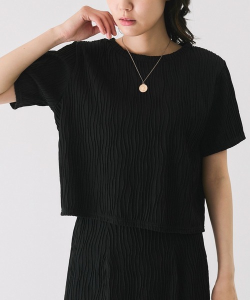 【デザイン・シルエット】ショート丈でスタイルアップし、リラクシーな着心地が叶うカットソー。ウエーブデザインの表面感がシンプルながらも存在感を演出します。程よく肉感のある生地で体型を拾いにくく、スッキリと着用できるのが嬉しいポイント。ボトム次第で綺麗めにもカジュアルな印象にもなれるアイテムです。【素材感】伸縮性のあるドライタッチな素材【カラー】01クロ 11シロ 63ピンク 80イエロー【スタイリングポイント】FLC05020:なみなみ柄タイトスカートとセットアップ着用可能◎シンプルなボトムと好相性です。ナロースカートに合わせてスタイルアップをしつつトレンド感の出るコーデもおすすめ。シンプルなデザインなのでジャケットなどの羽織りも合わせやすく、ロングシーズン着用していただけます。アクセサリーや小物も映えるので気分に合わせたテイストの着こなしが叶います◎裏地:なし光沢感:なし透け感:シロありポケット:なし伸縮性:あり生地の厚さ:普通ボタン:なしその他仕様:なし季節:春夏秋※撮影時の光、お使いのモニター環境によって色の見え方が違う場合がございます。予めご了承ください。モデル身長:166cm 着用サイズ:M