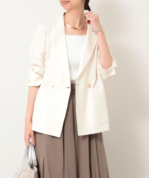 ◇25SS◇ MICO COULIER ◆Point ・店頭人気の麻混テーラードジャケットに新作が登場! ・お品切れしているジャケット5-0818-1-05-007と同型の、混率違いタイプが入荷しました ・リネン混のナチュラル感が魅力の軽やかで春夏に活躍する1枚 ・麻混ながらカジュアル過ぎず、きれい&高見えするところも人気のポイント ・肌触りが優しく、麻混で暑い時期も快適な着心地 ・ややゆったりめのボックスシルエットが、キレイめにもカジュアルにも着回しやすい◎ ・袖は折り返しのできるスリット仕様 ・手洗い可能のイージーケア素材で気兼ねなく着用可能 ・シンプルで飽きのこないデザインで1枚は持っておきたいジャケットです ---------------------------------------------------------- 透け感:キナリ:ややあり、ベージュ:若干あり、ネイビー:なし 裏地:なし 伸縮性:なし 光沢感:なし 洗濯:手洗い可 ---------------------------------------------------------- ●お取扱い上のご注意● 末永くご愛用頂くために、アテンションタグを必ずご確認の上、着用又はお取り扱い下さい。 気になる商品は、お気に入り登録がオススメです! クーポン情報、入荷情報が、通知されるようになります。 ※店頭及び屋外での撮影画像は、光の当たり具合で色味が違って見える場合があります。商品の色味は、スタジオ撮影の画像をご参照下さい。 ※商品画像に関しては出来る限り忠実に表示出来るよう努めておりますが、お客様がご利用のモニターの設定及び特性により、実際の商品と比較し色味に若干の誤差が生じる場合があります。 ※製品洗い加工の商品は、多少の歪み、シワなどが見られたり、風合いやサイズ等が1枚1枚異なります。汗や雨等で濡れた時や、摩擦により色落ちし、他の衣料を汚すことがありますので(特に濃色のもの)ご注意ください。